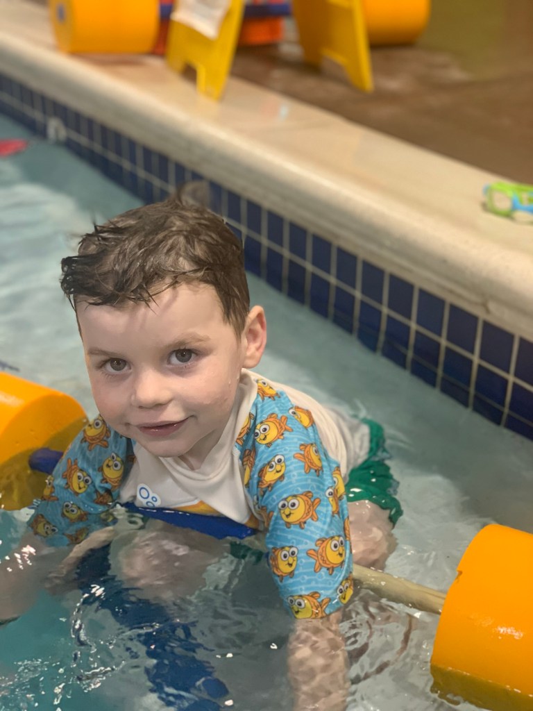 Winter is almost over and I’m so thankful for The atmosphere at Goldfish Swim School which is inviting, friendly & fun. The space features bright colors & a laid back vibe, making it perfectly for those that may be afraid of the water. On our first day, one of the staff members gave us a tour of the facility so we would feel comfortable & be familiar with everything it had to offer on day one. She made me feel confident that I could go to any of the staff members with questions or concerns.